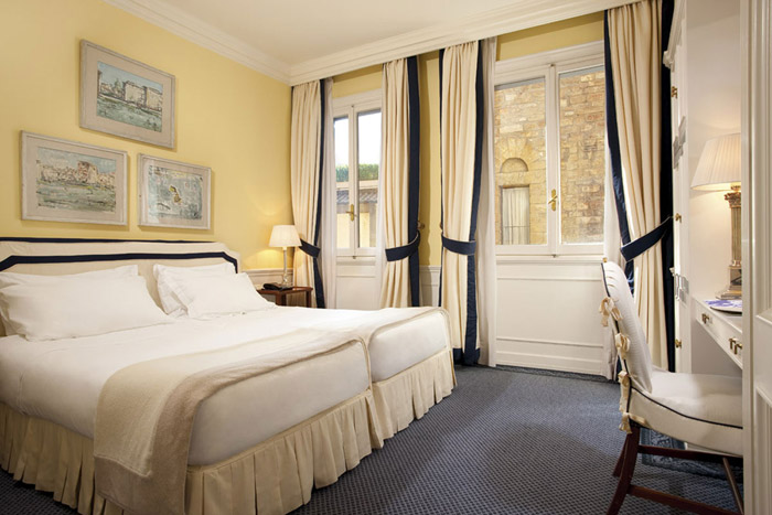 Комнаты декорированы в светлых тонах. Интерьер каждого номера уникален, однако все комнаты создают общую атмосферу изысканной простоты, элегантности и комфорта. Мебель из ценных пород дерева, драпировки из лучших итальянских тканей, мягкие ковры, оригинальные светильники и современная живопись подчеркивают ускользающую, недосказанную, и в то же время очевидную гармонию и роскошь интерьеров. Номера, расположенные в средневековой башне Марсили, декорированы в стиле эпохи Возрождения - сводчатые каменные потолки, антикварная мебель, кровати с балдахинами и старинные гобелены.