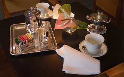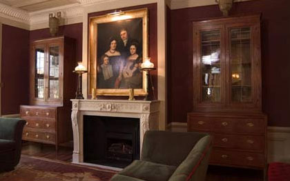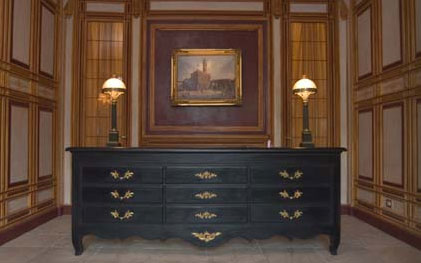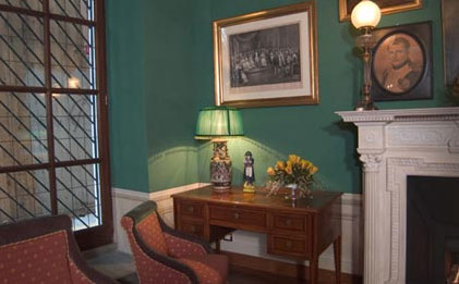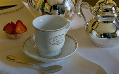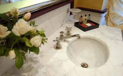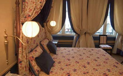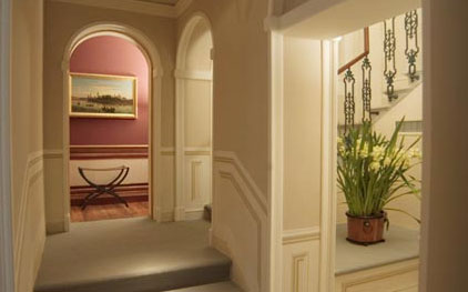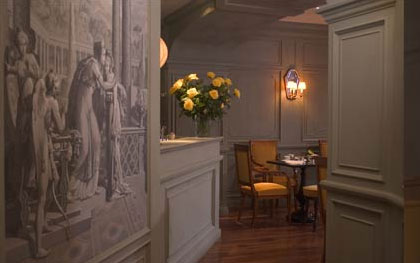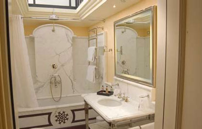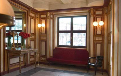 В интерьерах отеля использовано множество декоративных, античных элементов: колонны, пилястры, витражи 1920 года, мраморные полы и т.д.