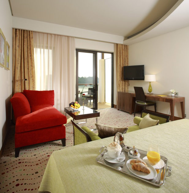 De Luxe Room (примерно 39 кв. м) - меблирована двумя кроватями и большим удобным креслом или одной кроватью “кинг-сайз” и софой. Возможны сообщающиеся номера. В комнате есть просторная крытая терраса с наилучшим видом на море, кондиционер, кабельное телевидение, WIFI доступ к интернету, телефон, мини-бар, личный сейф, шикарные ванные комнаты (две раковины, ванна, душ, фен и телефон) и гардероб, который доступен и с двух ванных комнат и с холла.