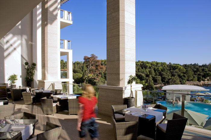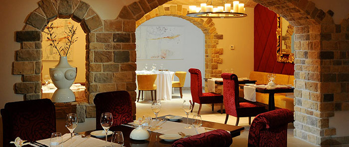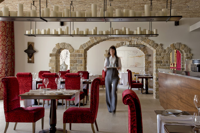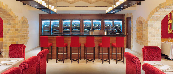 Бары и рестораны находятся на нижних этажах, там же оборудованы просторные террасы для трапезы на открытом воздухе и принятия солнечных ванн. На самом нижнем этаже разместился винный погреб.