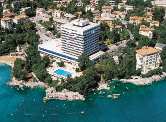 на самом берегу моря, примерно в 800 метрах от центра Опатии.