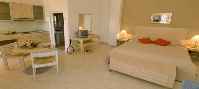 Villa Studio - спальня, гостинная и кухня в одном помещении, макс.вместимость- 3 человека, двухспальная кровать, выдвижная софа одноместная, с видом на море