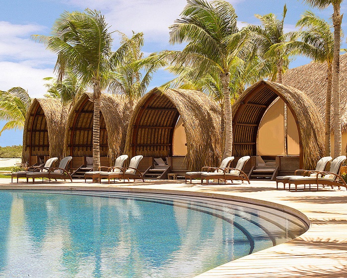 Two-Bedroom Beachfront Villa with Private Pool (300 кв. м) – состоит из 2-х спален (одна – с кроватью king-size, другая – с двумя кроватями queen-bed), гостиной, столовой на 6 человек, небольшой кухни, 2-х ванных комнат, гостевой ванной комнаты с душем, прихожей, террасы с персональным бассейном, джакузи и столовой зоной на открытом воздухе. Расположена на пляже, в окружении сада с кокосовыми пальмами и гардениями. Вид на лагуну и сад. Макс. размещение – 5 взрослых или 2 взрослых и 4 ребенка.