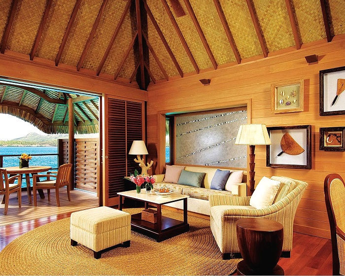 Mountain-View Over-Water Bungalow (100 кв. м) - состоит из спальни с кроватью king- size или двумя кроватями queen-bed, гостиной, ванной комнаты, террасы с шезлонгами, обеденным столом и спуском в лагуну. Вид на гору Otemanu. Расположены на сваях над водой. Макс. размещение – 3 взрослых или 2 взрослых и 2 ребенка.