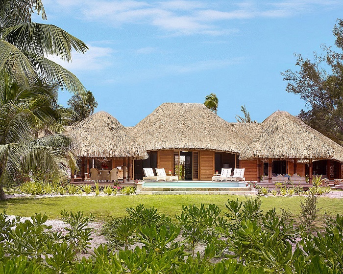 Three-Bedroom Otemanu Luxury Beachfront Villa with Private Pool (500 кв. м) - состоит из 3-х спален (2 кровати king-size, 2 кровати queen-bed), гостиной, столовой на 8 человек, кухни, гардеробной, 3-х ванных комнат (каждая – с ванной и душевой кабиной), гостевой ванной комнаты с душем, фойе, рабочей зоны, террасы с персональным бассейном, джакузи и столовой зоной на открытом воздухе. Расположена на пляже, в окружении сада с кокосовыми пальмами и гардениями. Вид на лагуну, пляж, гору Otemanu. Макс. размещение – 6 чел.