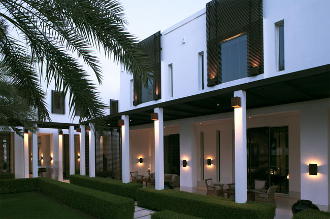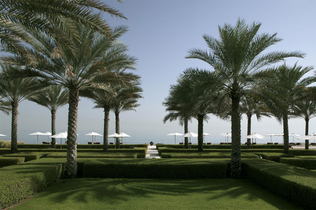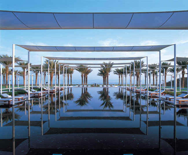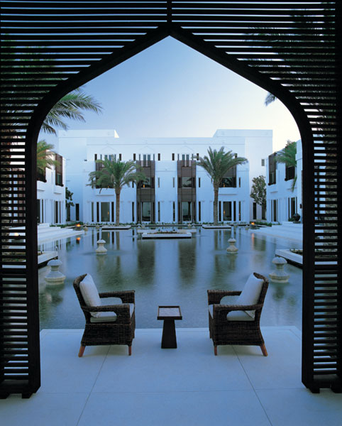 Исключительно элегантная простота и лаконичность стиля в гармонии с характерными чертами традиционной оманской архитектуры и фантастическими пейзажами, стройные пальмы садов на воде, бирюзовая гладь бассейнов, вокруг которых расположились уютные павильоны для отдыха, и спокойное безмолвие гор придают отелю The Chedi Muscat неизъяснимое очарование.