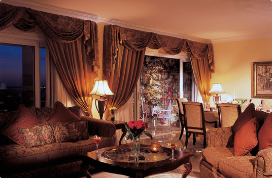 One Bedroom Ritz Carlton Suite (200 кв.м, 5 телефонов, мини-библиотека, кухня, 2 ванных комнаты, видеоплеер, барная стойка, спальня), есть возможность объединения в кондоминиум с Junior suite, One Bedroom Imperial suite и 2 Club rooms.
