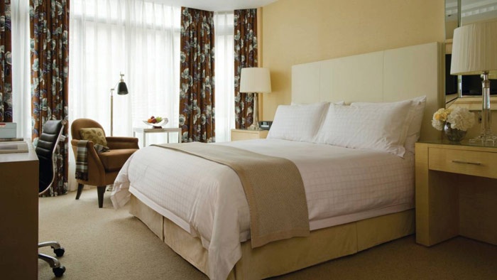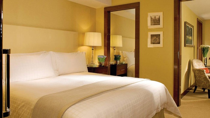 • Deluxe One-Bedroom Suite (112 кв. м) - состоит из спальни с кроватью king-size, гостиной с камином, столовой, гардеробной, ванной комнаты, отделанной мрамором с подогреваемыми полами, гостевой туалетной комнаты. Возможно объединение с соседним номером. Расположены с 6-го по 8-й этаж. Вид на город. Макс. размещение - 3 взрослых или 2 взрослых и 1 ребенок.