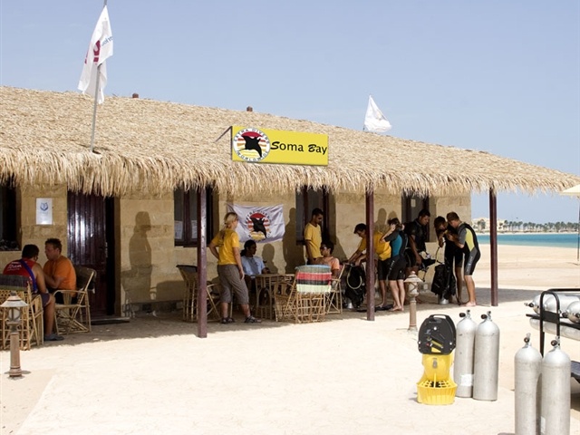 в курортном городе Сома Бэй, в 40 км от центра и в 35 км от аэропорта Хургады, на самом берегу моря.