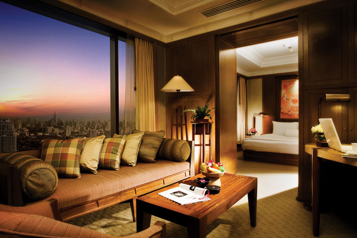 Deluxe Suite (48 кв.м) — расположен рядом со СПА Центром, состоит из спальни, гостиной с рабочей зоной, ванной комнаты, имеет панорамный вид на город и реку Chao Phraya