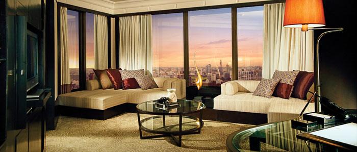 Deluxe View Suite (48 кв.м) — расположен рядом со СПА Центром, состоит из спальни, гостиной с рабочей зоной, ванной комнаты, имеет панорамный вид на город и реку Chao Phraya