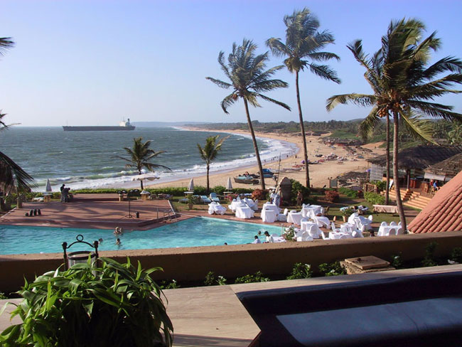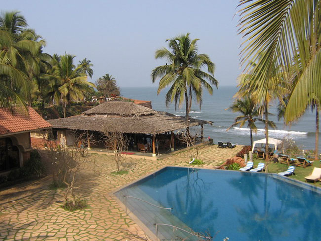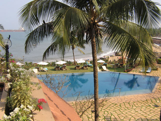 на пляже Sinquerim Beach на северном побережье Гоа, в 40 км от аэропорта, в 15 км от столицы Гоа Панаджи. Лучший отель северного побережье Гоа.