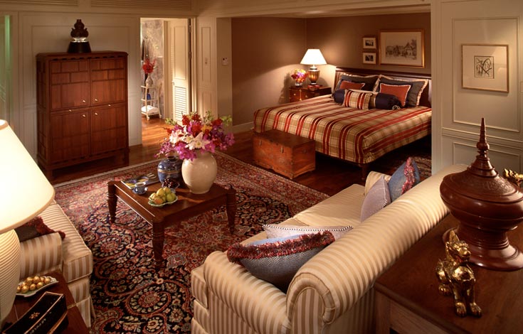 Номера расположены в крыле River Wing, обращенном к реке, в крыле Garden Wing с видом на сад и реку, а также в крыле Author's Wing, где останавливались знаменитые писатели. В номерах – элегантные интерьеры, сочетающие утонченную классику и восточную роскошь: отделка из тикового дерева и тайского шелка, ковры ручной работы, антикварная мебель и изысканные произведения искусства. Гостям всех номеров предоставляются услуги дворецкого.
