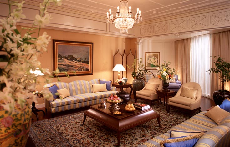 The Oriental Suite (295 кв. м) — роскошный номер, где останавливались многие знаменитости, оформлен в кремовых тонах, включает фойе, гостиную, столовую, 2 спальни, просторную ванную комнату