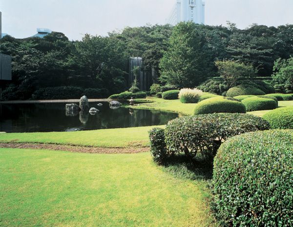 Отель, расположен в южной части города, но от него можно быстро добраться до центра Токио в том числе и до главных торговых и развлекательных районов - Гиндза (Ginza) и Роппонги (Roppongi). Здание окружено традиционным японским садом с прудами и водопадами. Из номеров открывается впечатляющая панорама города. Рестораны отеля, предлагающие европейские, китайские и местные блюда, славятся изысканной кухней и превосходной картой вин.