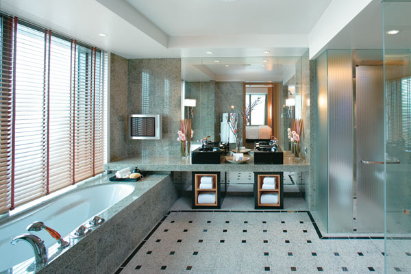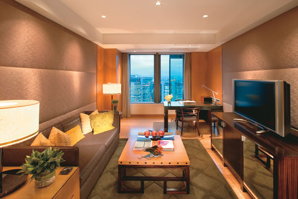 В интерьерах номеров этого отеля поразительным образом обыгрывается пространственные эффекты – и без того просторные номера кажутся еще больше благодаря огромному количеству панорамных окон и стеклянных стен. Даже принимая ванну, вы сможете наслаждаться видами Токио. Необыкновенно красивая городская панорама открывается и из Спа-центра и из тренажерного зала, и из окон многочисленных ресторанов отеля.