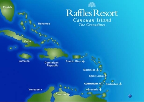 Расположение отеля Raffles Resort Canouan Island: