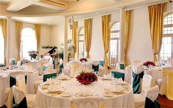 С террасы виллы открываются завораживающие виды на побережье, окрестные острова и расположенный внизу курорт, что делает ее замечательным местом для проведения вечерних коктейлей и свадебных приемов с последующим банкетом в элегантном бальном зале, сообщающимся с рестораном La Varenne.