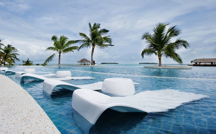 14 Sea View Overwater Villas (85 кв. м) - водные виллы. В номер спальня, гостиная зона, ванна и душ, просторная терраса с прямым выходом в океан. С видом на океан. Максимальное размещение - 2 человека.