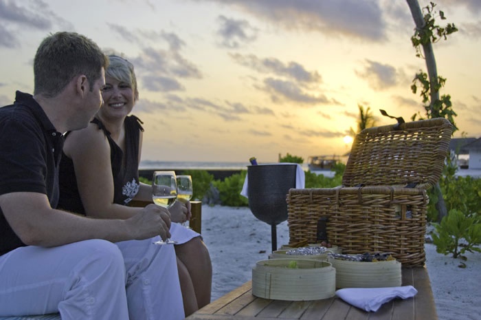 романтический ужин для пары из 3-х блюд, включая вино и декорацию цветами на частном острове