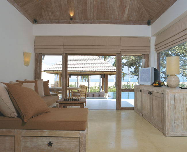 Pool Villa Suite (376 кв. м): гостиная, спальня, ванна на открытом воздухе, 2 душа (один - «летний»), бассейн (3x10), шезлонги у бассейна