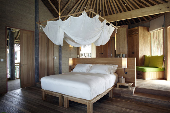 Beach Villa (108 кв. м) - виллы расположены на пляже, каждая вилла включает спальню с кроватью King-size, ванную комнату, меблированную террасу с садом и душем на свежем воздухе, деревянную платформу с обеденной зоной, имеет отдельный выход к лагуне.