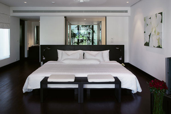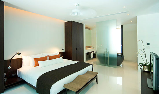 Состоит из одной или двух спален, гостиной, ванной комнаты с панорамными окнами, выходящими в сад, меблированной террасы c выходом к бассейну-лагуне. В номере – телевизор с плоской панелью