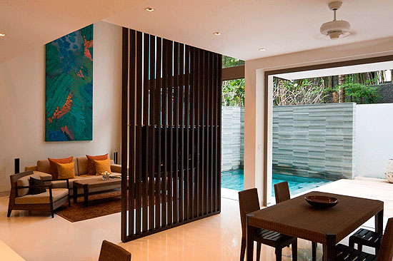 В номерах – стильные современные интерьеры в светлых тонах, с отделкой из натурального дерева, удобной мебелью, изготовленной на заказ, тщательно подобранными элементами декора, сочетающими западный и восточный стили, уютными террасами с прекрасным видом на море и сады. Гостям резиденций предоставляется ряд дополнительных услуг: отдельная парковка, круглосуточные услуги консьержа, континентальные завтраки и вечерние коктейли в отдельном зале, а также коллекция вин и сигар; проживание в резиденциях – с детьми старше 14 лет.