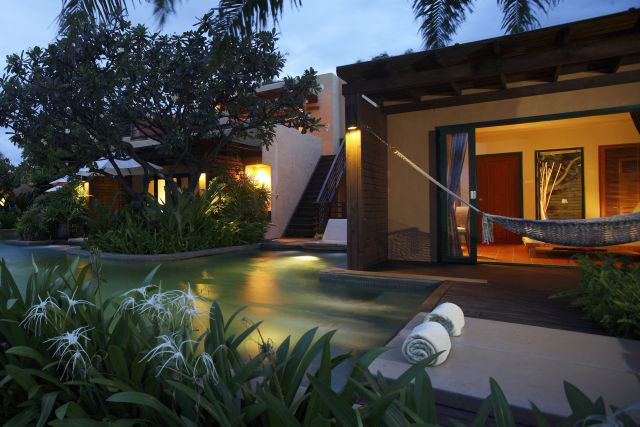 Pool Suite: расположен на пляже в бунгало, состоит из спальни с кроватью king-size, ванной комнаты, веранды с бассейном/джакузи