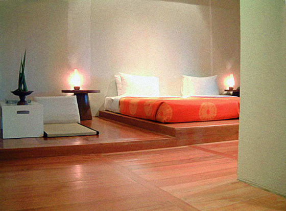 Deluxe Inao Room (32 кв. м) - оформлен в японском стиле, спальные места расположены матрасах, лежащих на деревянной платформе, включает спальню, ванную комнату, балкон с видом на море и сады