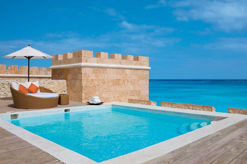 Ocean Pool Suite - расположен на 3 этаже здания, стилизованного под старинную крепость, включает спальню, гостиную, ванную комнату, просторную террасу (293 кв. м) с бассейном и видом на пляж и океан, макс. 2 чел.