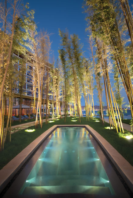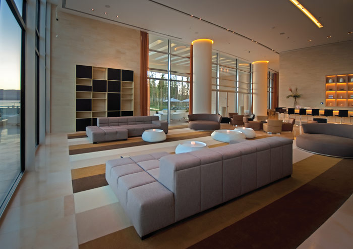 Из каждого номера отеля открывается вид на море благодаря особенной волнообразной форме здания. Необычная структура и интересно оформленные интерьеры сочетаются с самыми современными техническими новинками.
