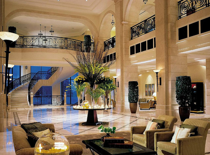 Двухэтажное лобби отеля напоминает о величественных монументах прежней Иордании.