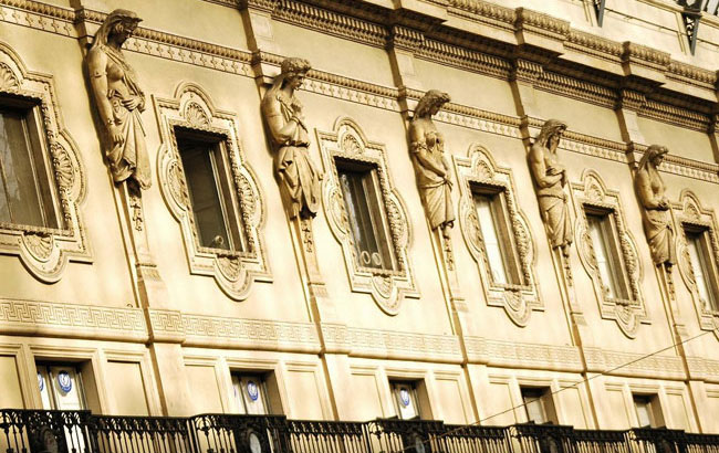в центральной части города в исторической галерее Виктора Эммануила II между площадями Piazza Duomo и Piazza della Scala.