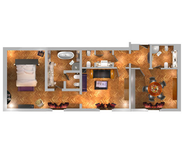 Апартаменты отлично подходят для длительного проживания - к Вашим услугам роскошный интерьер и персональная охранная система. Каждый номер неповторим в оформлении, тщательно подобрана дизайнерская мебель, современные технические аксессуары (ноутбук, факс и принтер), предметы антиквариата, яркие полотна. Изысканное убранство номеров причудливо перекликается с историей и стилистическим своеобразием Милана.