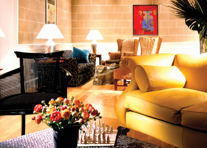 Элегантные интерьеры оформлены в классическом стиле, воссоздающем атмосферу начала XX века: теплые насыщенные тона, эркеры, занавешенные тяжелыми драпированными шторами, отделка деревянными панелями, мягкое ковровое покрытие на полах и изысканная живопись на стенах — гармоничный ансамбль очаровывает постояльцев, дополняя продуманный стиль гостиницы.