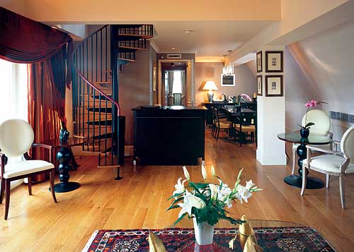 Penthouse Suite - двухуровневый номер; с панорамным видом на город; состоит из столовой, библиотеки, кабинета (на первом этаже), спальни, гардеробной, ванной комнаты, сауны и террасы с зоной для барбекю.