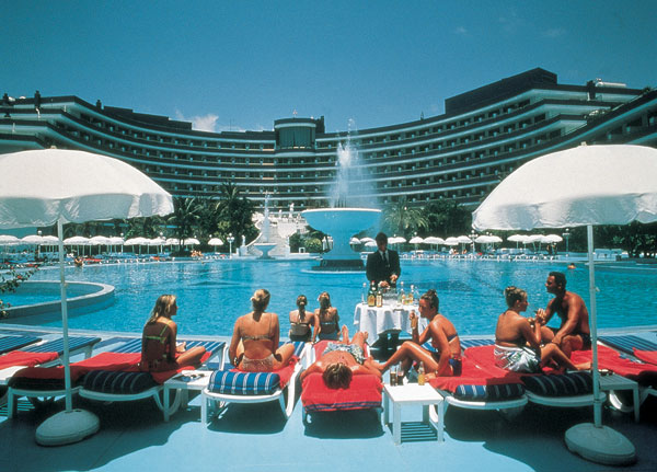 Римский Бассейн - это впечатляющий бассейн на 300 кв. м с джакузи, в окружении колонн и мраморных статуй, с приятным соляриумом с лежаками. В окружении трех величественных отелей: Julio Cesar, Cleopatra и Marco Antonio Palace и с террасой для наслаждения салатом, сэндвичем или Вашими любимыми напитками.
