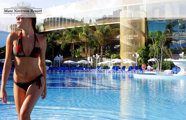 Адрес отеля: Avenida de las Americas s/n, Playa de las Americas, 38660 Arona, Tenerife, SpainMediterranean Palace является частью комплекса Mare Nostrum Resort & Spa, состоящий из пяти отелей, который находится на юге Тенерифе непосредственно на берегу океана. Это демократичный и относительно недорогой в части стоимости проживания, но, вместе с тем, достаточно комфортабельный отель. Построен в 1988 году, обновлен в 2000 г. Его архитектура исполнена в стиле традиций Средиземноморья с преобладанием голубых и синих оттенков, а мраморные лестницы и статуи в сочетании с эффектыми интерьерами холла и цилиндрическими колоннами лифтов подчеркивают пятизвездочный «статус» отеля. Mediterranean Palace - прекрасный вариант для любителей активного отдыха и семей с детьми.