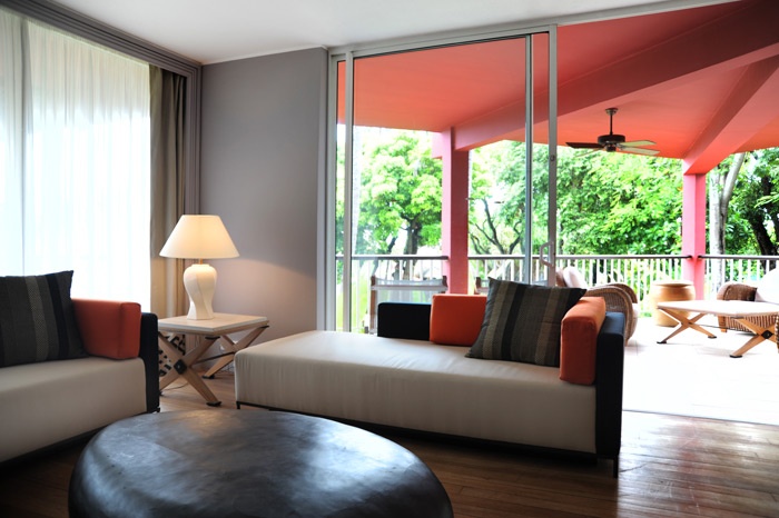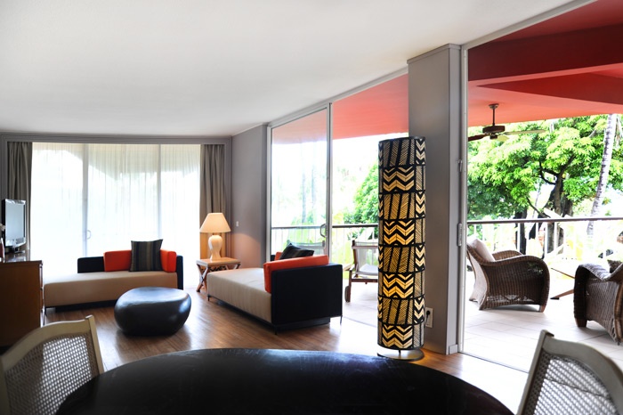 5 Junior Suites (84 кв.м.) - просторные номера в основном здании отеля с потрясающим видом на сады и бирюзовые виды лагуны, состоят из спальни с двуспальной кроватью и диван-кроватью, просторной гостиной зоны, 2-х телевизоров, полностью оборудованной ванной комнаты с ванной и душем, террасы с зоной отдыха.