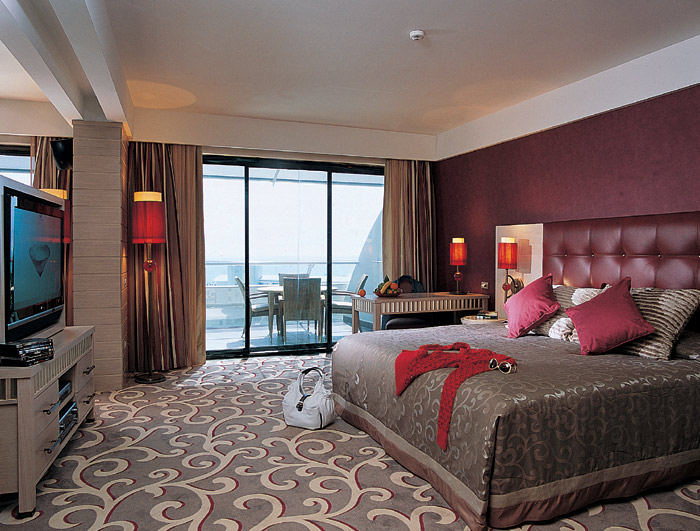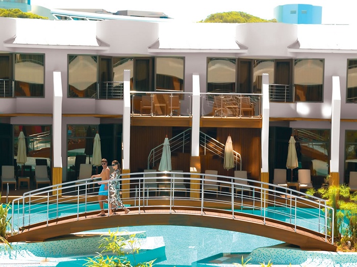 6 Diamond Suites (310 кв. м) - двухуровневые номера с прямым видом на море, собственный бассейн с джакузи, на первом уровне: гостиная с мягкой кожаной мебелью, обеденная комната на 8 чел., барная стойка, кухня (холодильник, плита, раковина), домашний кинотеатр, шок-душ, сауна; на втором уровне: 2 спальни с дверью: одна с french bed, другая с twin bed, в каждой комнате есть ванная комната с джакузи, шок-душем, WC, между уровнями имеется комната для дворецкого, один общий балкон на две спальни, возможен выход в бассейн, макс. 4+1 чел. С первого этажа есть прямой выход в бассейн. В номере помимо стандартных принадлежностей: фрукты, аccорти из закусок, локум, чипсы Pringles с особым соусом, турецкие сладости, ассорти из пирожных (с шоколадом и фруктами), ассорти из канапе (с лососем, сыром и мясом), круглосуточное обслуживание в номер - бесплатно, принадлежности для бара, 1 бутылка водки, 1 бутылка джина, 1 бутылка виски, 1 бутылка раки.