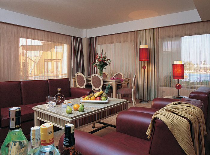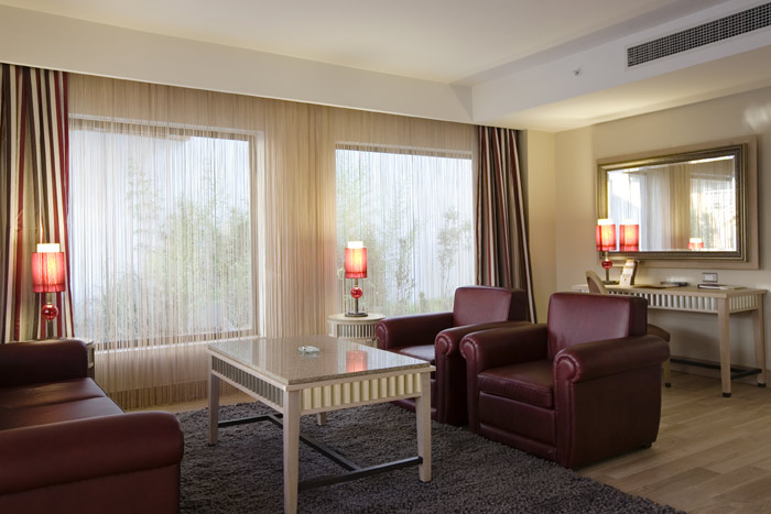 8 Golf Suites Тип 1 (65 кв. м) - двухкомнатные номера тип 1, с видом на сад/гольф поле, гостиная с мягкой мебелью, спальня без двери с French bed, ванная комната с ванной и душем, терраса, макс. 3 чел. В номере помимо стандартных принадлежностей: корзина с фруктами, ассорти из шоколада, турецкие сладости, ассорти из закусок, бутылка вина, принадлежности для бара, круглосуточное облуживание в номер – бесплатно.