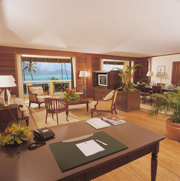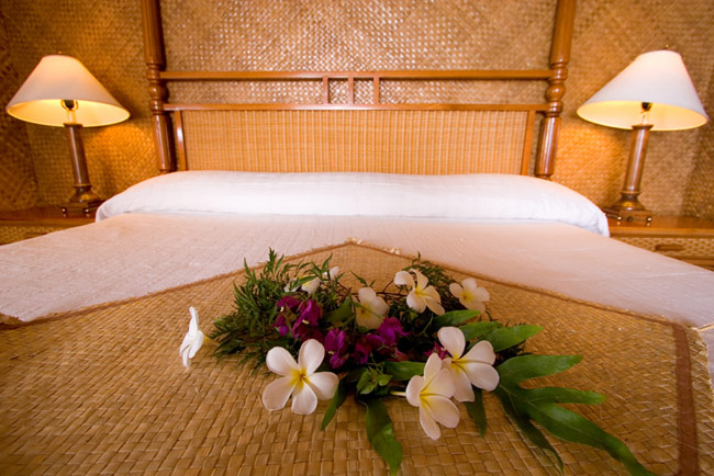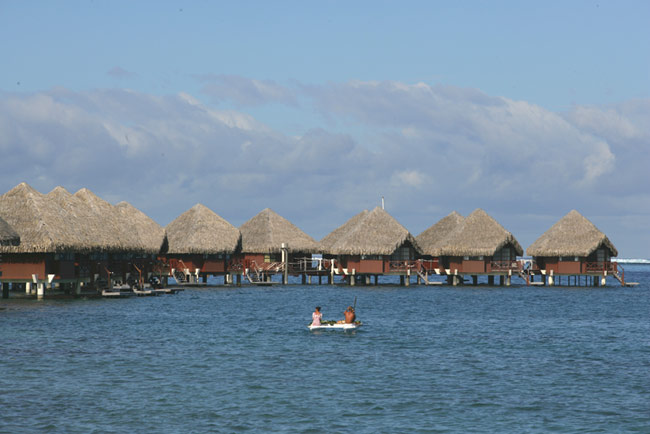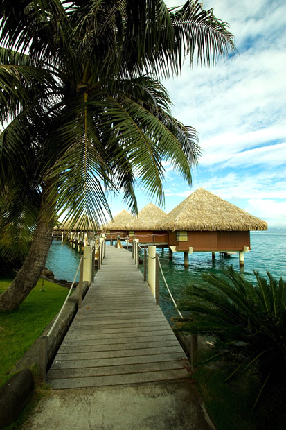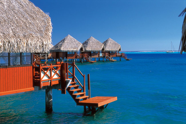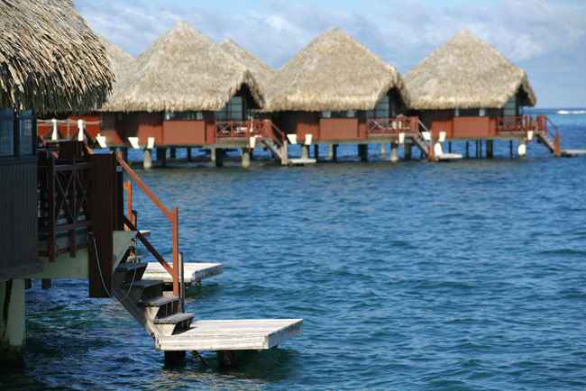 Площадь бунгало 30.5 кв.м. Расположены на сваях в воде на отдельном островке с видом на остров Муреа, оформлены в полинезийском стиле, состоят из спальни с гостиной зоной, ванной комнаты, террасы с зоной отдыха и с прямым спуском в воду.