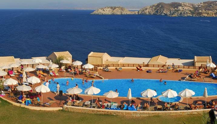 | Отдыхали с 4 по 12 июня 2011 года В целом отель понравился. Расположение: Не очень удовлетворило расположение отеля, так как до ближайшего населенного пункта (Агия Пелагия) идти около 4 км. в гору, мы брали квадрик напрокат, чтобы полюбоваться видами вокруг деревушки. Самый ближайший крупный населенный пункт - Ираклион (22 км.). Пляж: Все пляжи в Греции муниципальные, поэтому лежаки и зонтики платные. При оплате лежаков Вам дают квитанцию, которая действует до конца дня. Пляж - галька. В Агии Пелагии пляж - песок (оч красивое место). Аренда машины: брали машину через нашего гида Тезтур, ни разу машину не подали в назначенное нами время. Либо раньше на час, либо позже. В связи с этим рекомендую настаивать на конкретном времени! Аренда машины у местного агента на ресепшене - дешевле где то на 10 евро. Сервис: Сервис средний. Пляжные полотенца не смогли поменять даже после настоятельной просьбы. Складывать их уже было невозможно (от соли за 5 дней стали совсем деревянными). На 7 день дали только одно новое полотенце. Бар не пополнялся тоже около 5 дней, до тех пор, пока мы не пришли с претензиями на ресепшен, после чего каждый день у нас появлялись новые напитки в холодильнике)) Питание: Супер. Все вкусно и разнообразно. Ежедневно ели арбузы, дыни и т.п., выпечку, торты, 4-5 видов мяса (курица, кролик, ягненок, говядина, свинина), морепродукты (жареное филе рыбы, тунец, сардины, кальмары), сыры и т.д. Местное вино в столовой тоже очень понравилось. На территории помимо основой столовой расположены так называемые рестораны: китайский и Кулинариум. Гости отеля могут поужинать в них по одному разу и по предварительной записи. Если Ваш оператор тезтур, то в китайском ресторане можно ужинать 2 раза. Обратите внимание, что по системе «все включено» можно заказать 4 вида блюд: первое, второе, салат и десерт. Номера: отличные, без претензий, у нас был без вида на море. Насекомые: Никаких насекомых в номере нет!!! На балконе - да, очень большое количество мокриц, которые каждый день выметает уборщица. В номер они не ползут совершенно точно, не смотря на то, что мы не пользовались кондиционером и балконная дверь была открыта настежь. Отдыхающие: большинство - французы, практически все остальные - русские. На пляже то и дело слышишь родную речь(( Анимация: я бы сказала, что ее нет))) и слава богу, потому что хотелось спокойного отдыха. Сувениры: Считаю самым лучшим презентом из Греции – настоящее оливковое масло и узо. Греки люди честные, желание впарить товар подороже у них отсутствует (подтверждено личным опытом). Рядом с отелем есть сувенирные лавки, цены в которых даже несколько ниже, чем в магазинах Ретимно и Агиоса Николауса. «Прижав ни одного продавца к теплой стенке» выяснила, что лучшее масло – это с кислотностью 0,3 в непрезентабельной канистре желательно полученное старым механическим способом, а не то, что радует глаз в милой декоративной бутылочке с травками внутри. Тоже самое касается раки и узо. Если Вы цените качество, то берите литровую канистру за 7 евро, а не за 5 евро 200 мл. в красивой склянке. И самое главное: не оставляйте никакие деньги на виду в номере! по сумкам вроде бы не лазают, но вот был неприятный инцидент: вечером перед ужином выложила свернутые 40 евро и горсточку монет на стол среди своих вещей в полной уверенности, что в 8 вечера сервис в номера не заходит. Вер