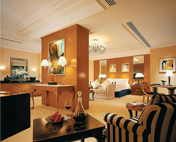 Номера отеля оформлены в элегантном классическом стиле, с ковровым покрытием на полах, удобной мебелью, тщательно подобранными элементами декора. Из панорамных окон открывается живописный вид на улицы Шанхая.