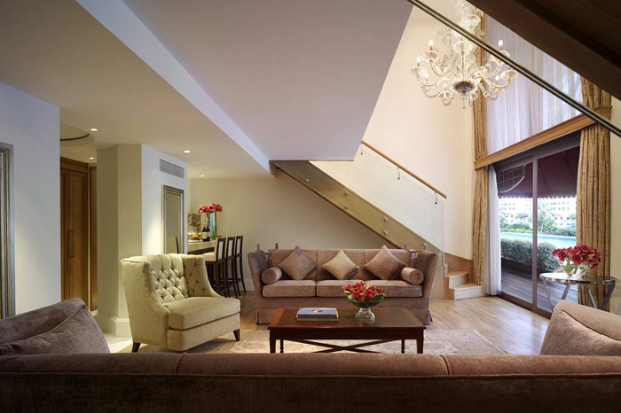 16 Garden Suites Type 2 Rooms (170 кв. м) - трехкомнатные номера. Гостиная с мягкой мебелью, обеденным столом, мини-кухней, 2 спальни с дверью (в первой king size bed, ванна с джакузи, турецкая баня с душем), в другой - twin bed, ванная комната с ванной, душевая кабина и биде, в номерах на 1-м этаже имеется выход в сад к бассейну, макс. 4 чел.