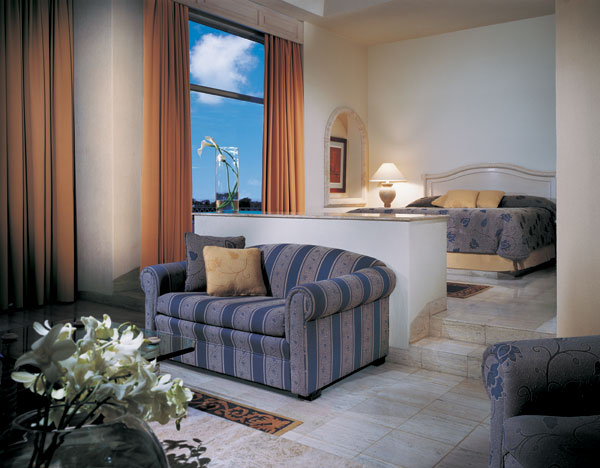 Junior Suite Partial Ocean View (прибл. 50 кв. м) - состоит из спальни с кроватью king-size или двумя кроватями double, гостиной зоны с диваном и креслами, ванной комнаты, балкона с видом на бассейн, сады и частичным видом на океан и пляж.