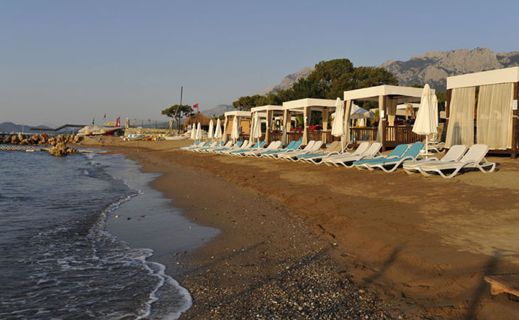 в 45 км от аэропорта г. Анталья, в 9 км от г. Кемер, в поселке Гёйнюк, на самом берегу моря.