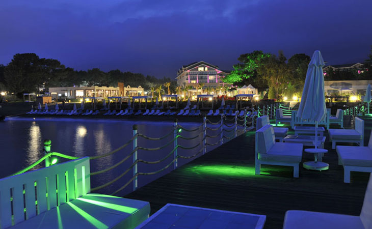 Пляж: cобственный пляж протяженностью 700 метров (мелкая галька с песком) и два пирса. На пляже и у бассейнов шезлонги, зонтики, матрасы, пляжные полотенца – бесплатно. VIP павильоны на пляже (индивидуальное обслуживание) по резервации за дополнительную плату.
