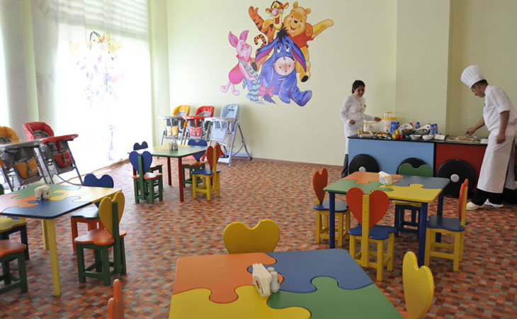 Специально обученный персонал организовывает досуг маленьких гостей в течение всего дня. Спортивные состязания, познавательно-обучающие занятия, игры на детской площадке и в бассейне Мини-клуба, мини-дискотека, мини-ресторан, мини-кинотеатр, мороженое, комната отдыха и игровые комнаты для малышей.